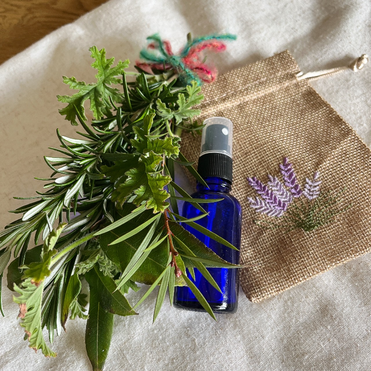 お好みのアロマで作ったスプレーをふりかけて、その香りを楽しめます。